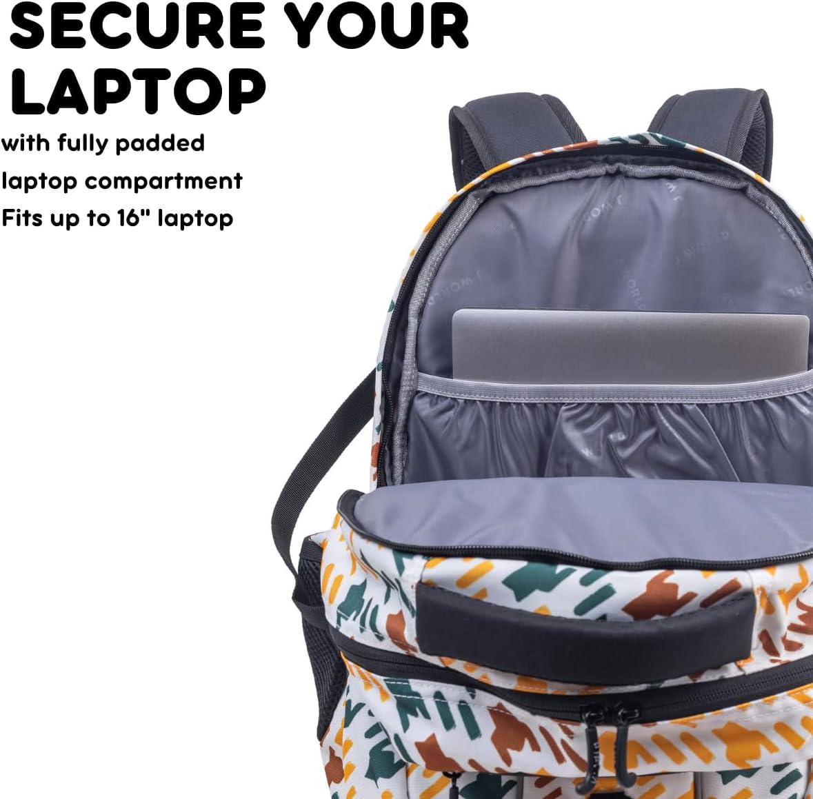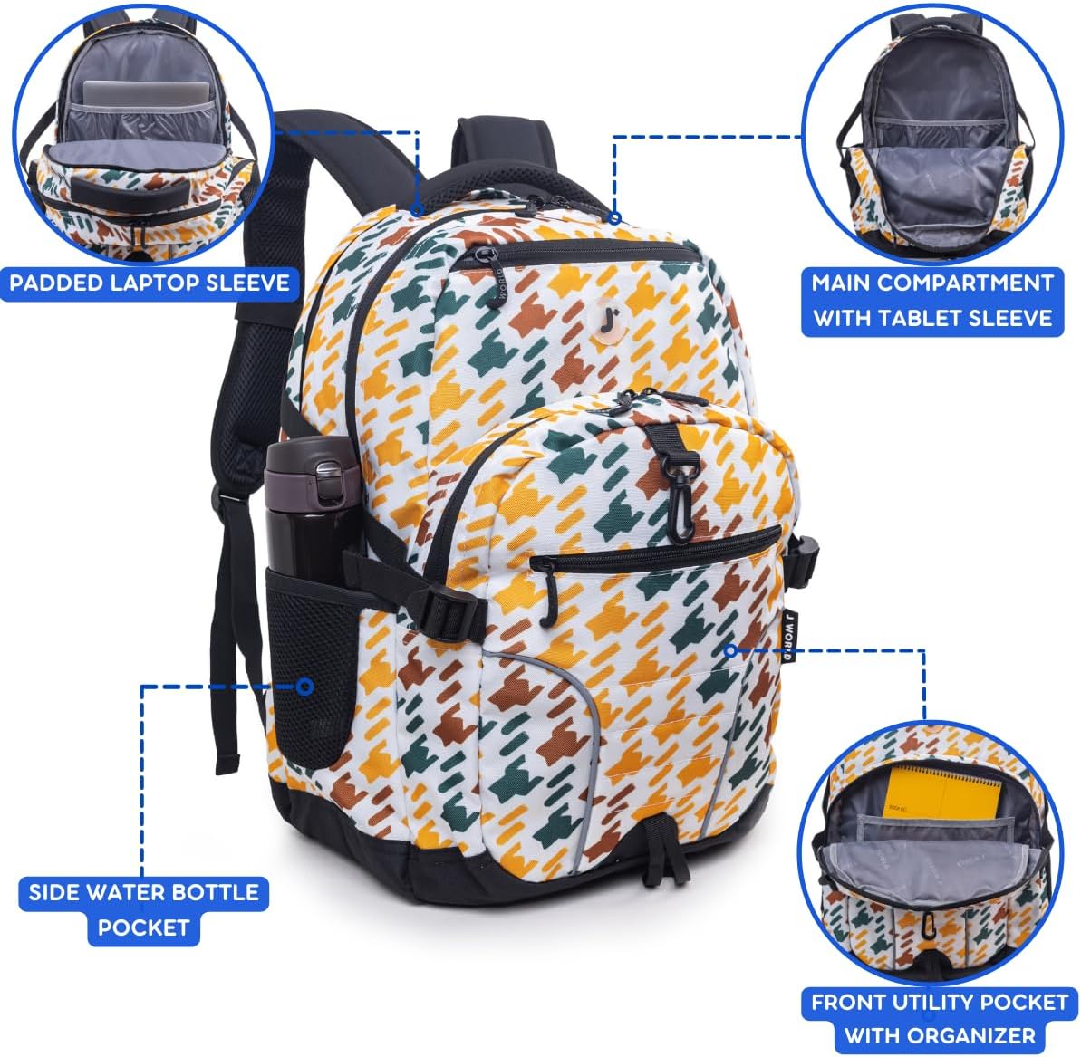 - Stylish & Practical – Laptop backpack with colorful, unique prints that combine fun style with everyday function.