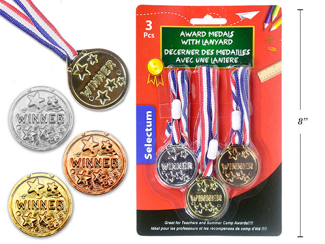 Selectum Award Medals with Lanyard 3pc 3.8cm Gold, Silver, Bronze