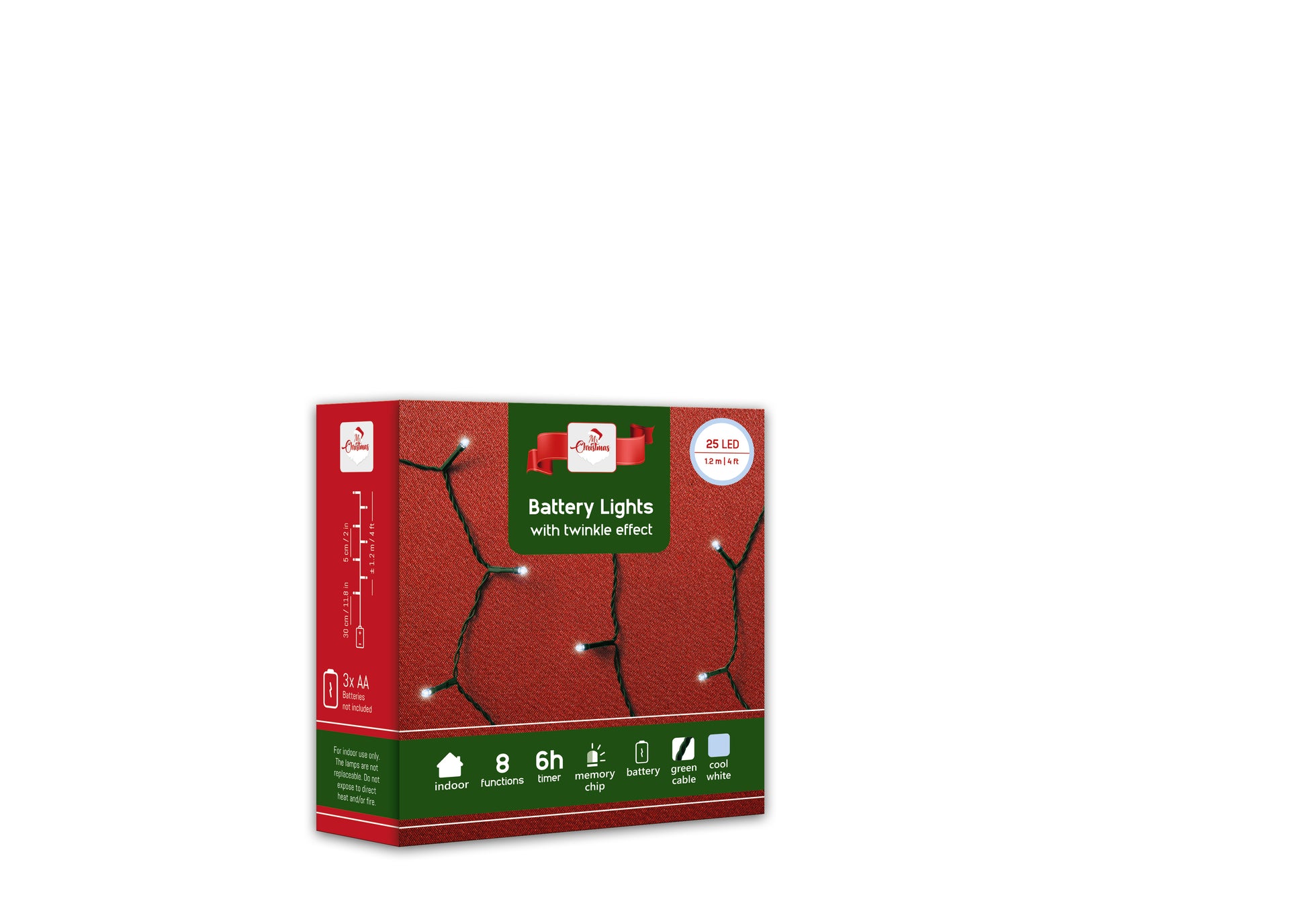 Mr Christmas Battery Led Lights w/Twinkle Effect 25 Cool White 4ft Green Cable 3 AA