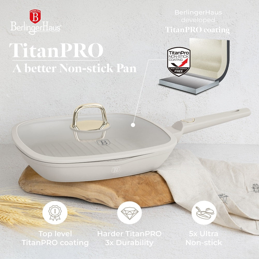 Berlinger Haus Sahara Collection Grill Pan w/Lid 28cm Cream