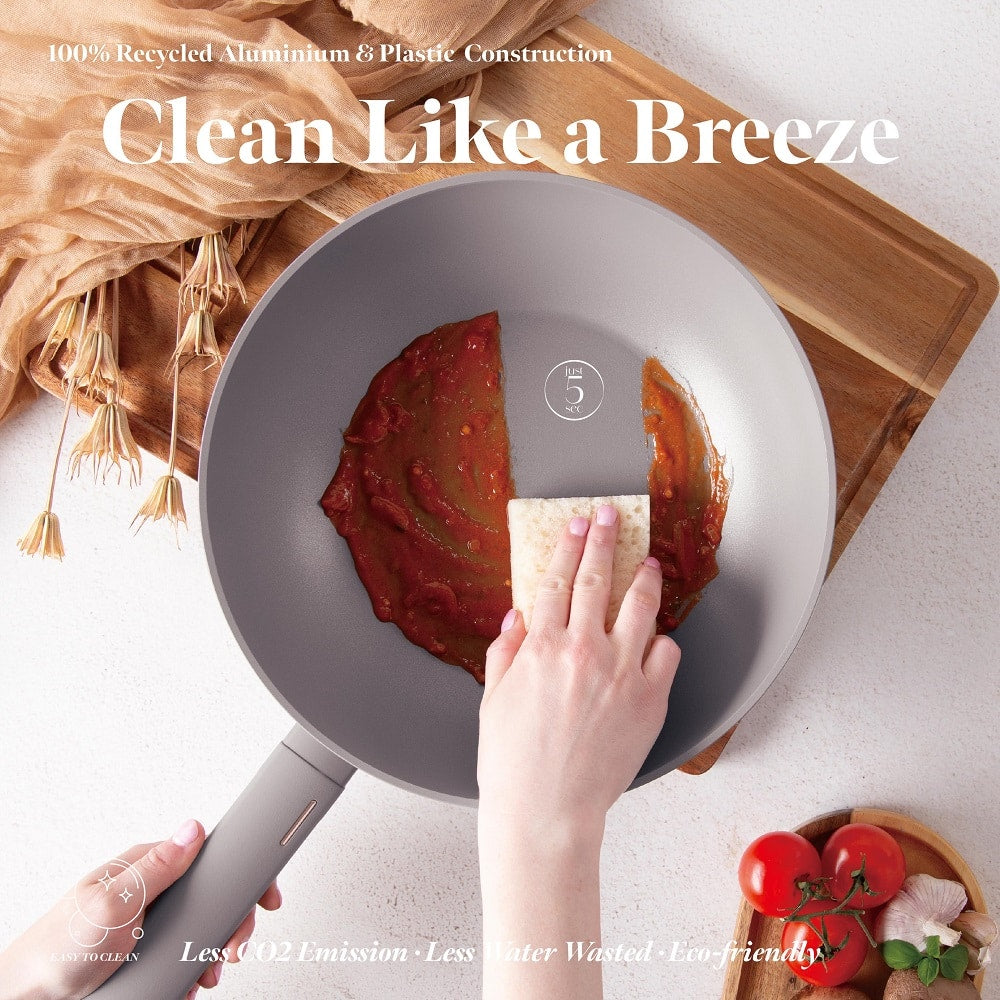 This wok is crafted from forged aluminum, ensuring even heat distribution for perfectly cooked dishes. The 3x durable non-stick TitanPro coating prevents food from sticking, allowing for healthier cooking with less oil. This coating also makes cleaning easy and extends the lifespan of the wok.