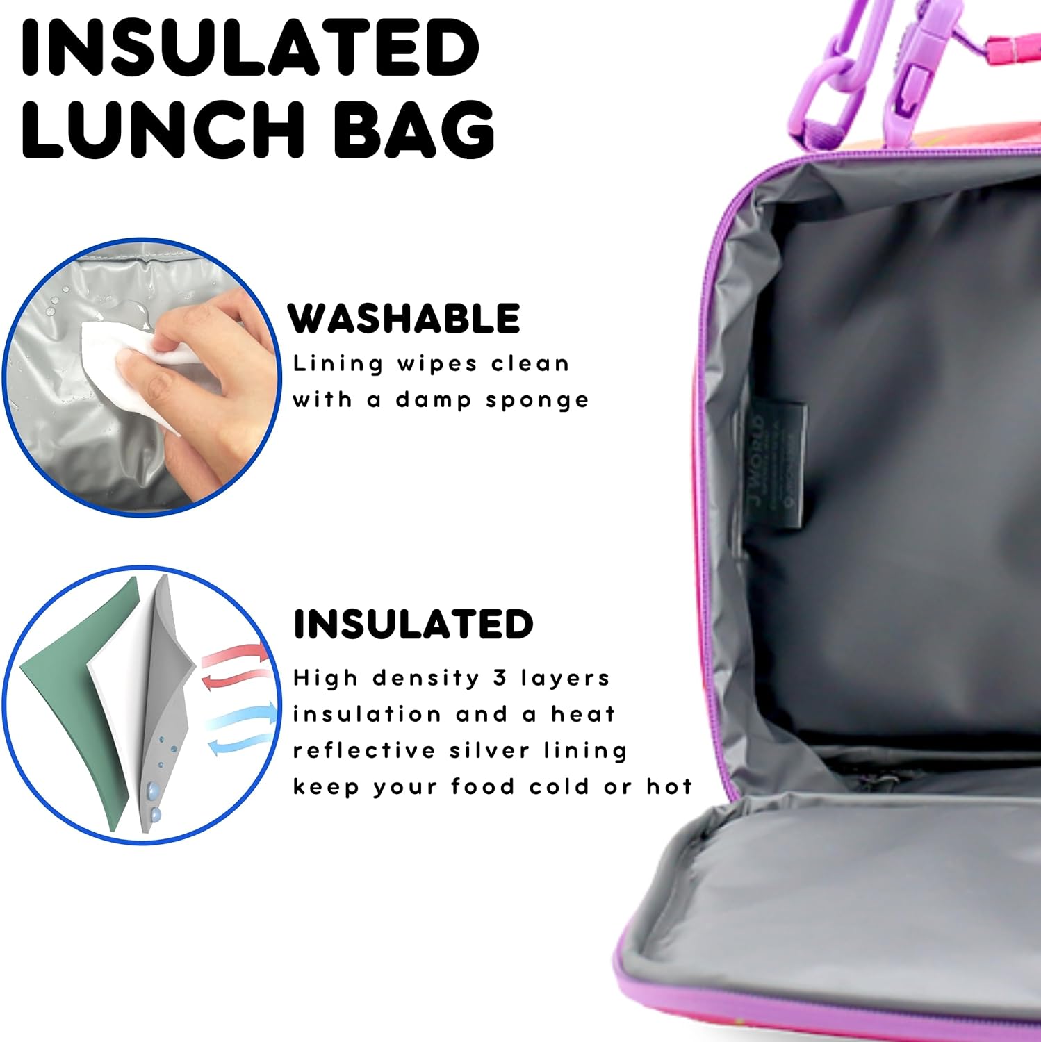 - Insulated Protection – High-density insulation with heat-reflective lining keeps food cold or hot. For ages 8+.