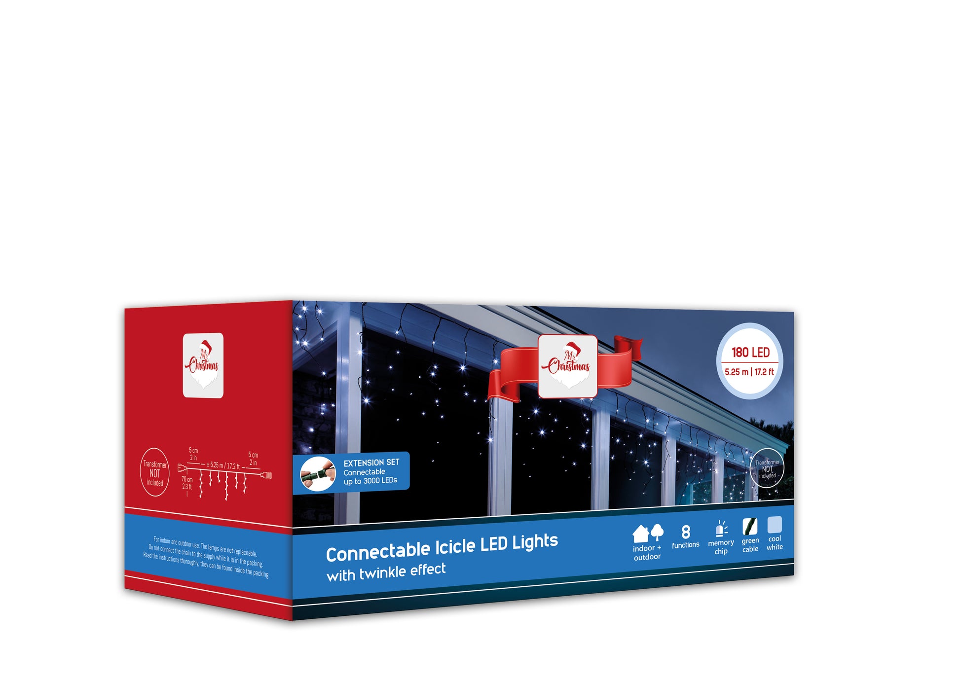 Mr Christmas Connectable Icicle Led Lights w/Twinkle Effect 180 Cool White 17.2ft