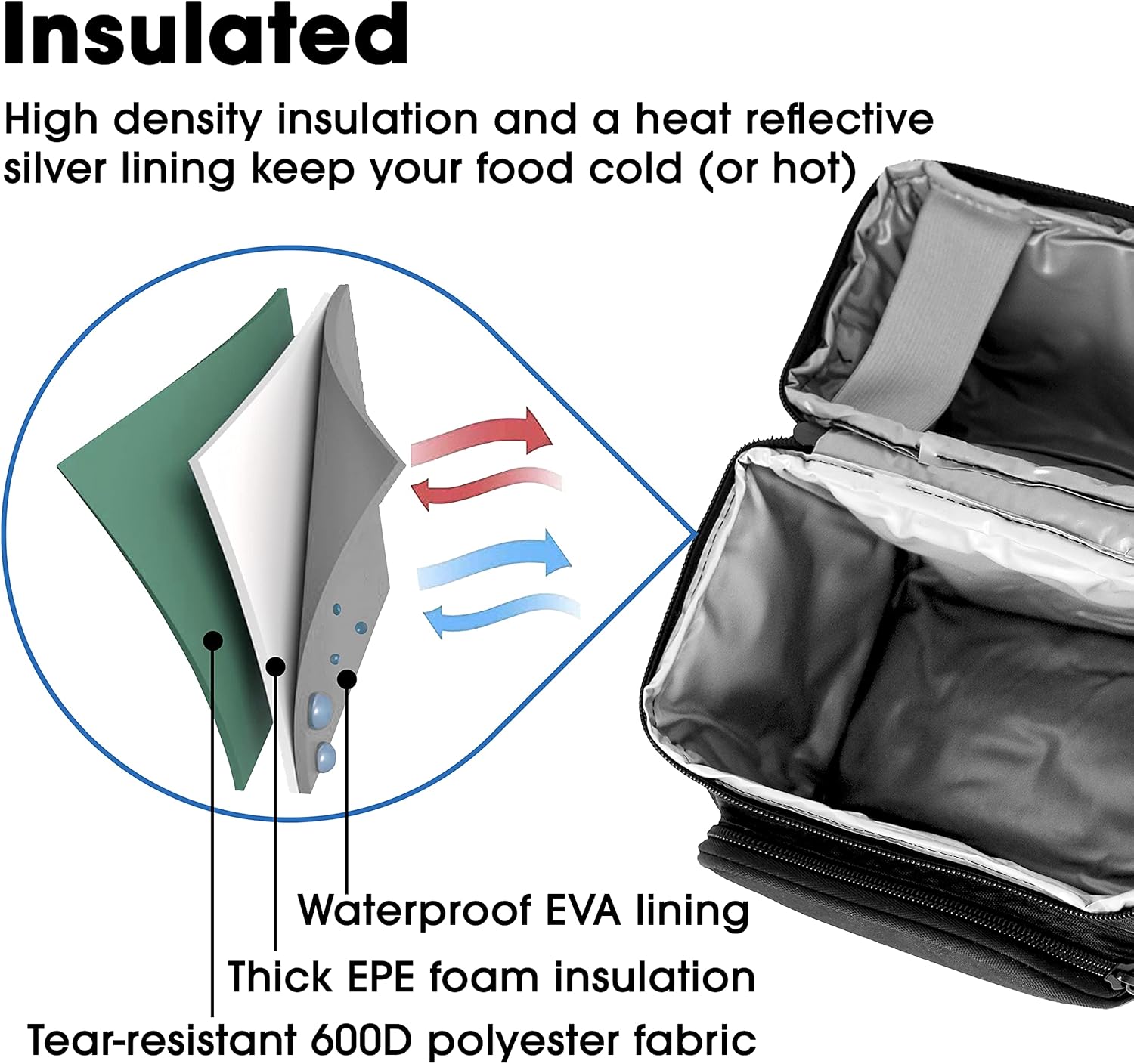 - Insulated Protection – High-density insulation with heat-reflective lining keeps food cold or hot.