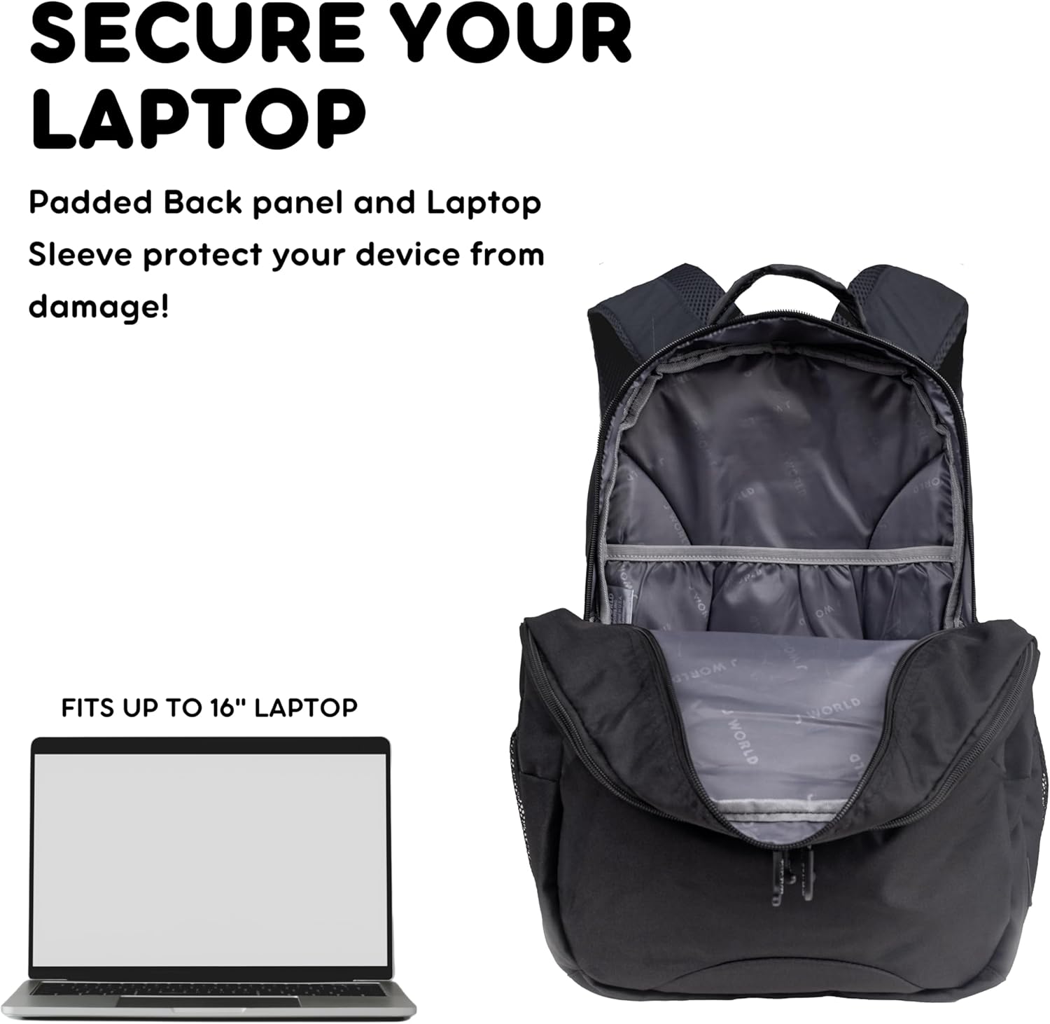 - Spacious Design – Main compartment fits books, lunch, and a laptop. Measures 18 x 13 x 8 in (30L).