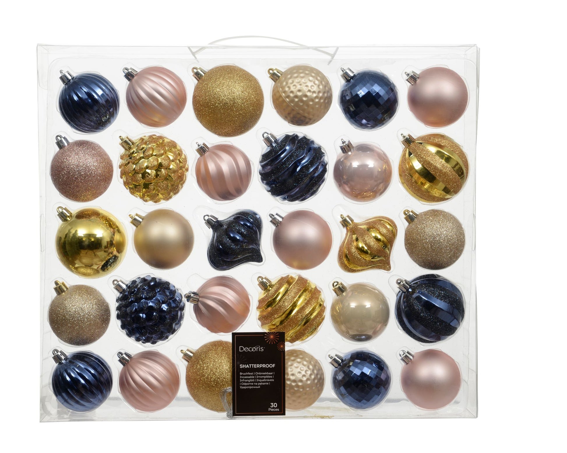 Decoris Shatterproof Bauble Mix Box Polystyrene Matt Shiny Glitter Paris 30pc