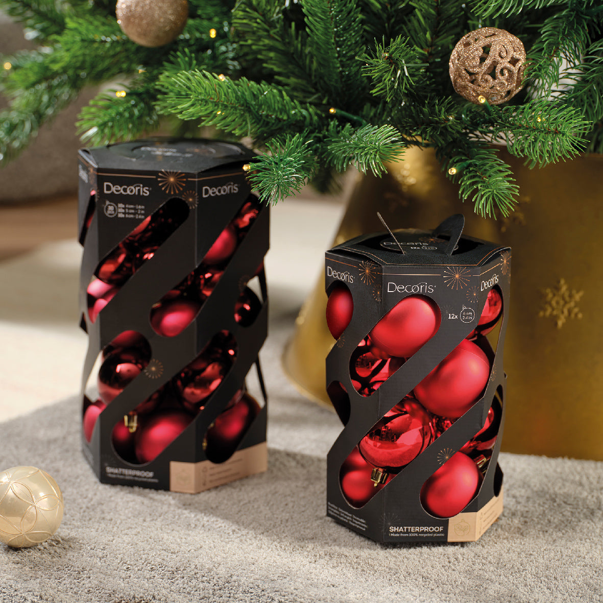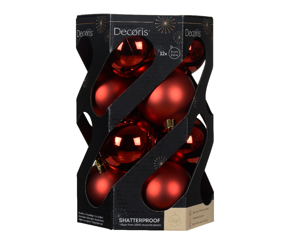 Decoris Recyclable Baubles Shatterproof Shiny Matt Mix 6cm Christmas Red 12ct