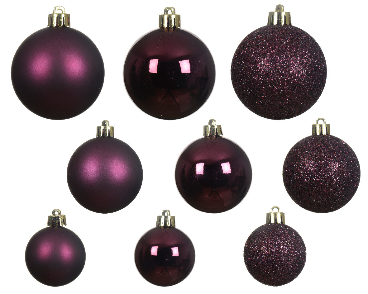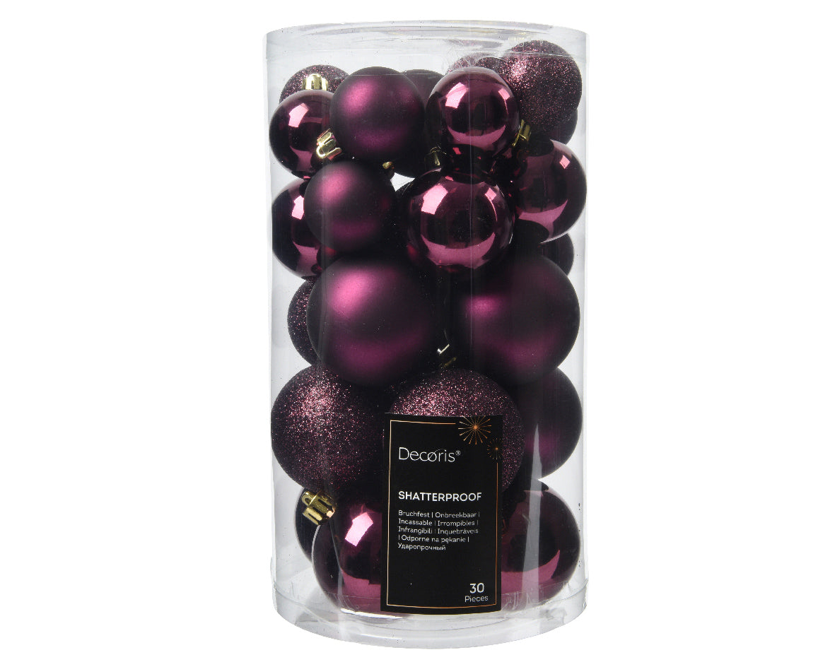 Decoris Bauble Shatterproof Mix Shiny/Glitter/Matt Dark Mauve 30ct