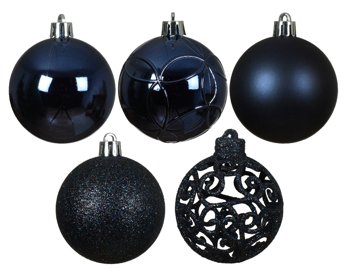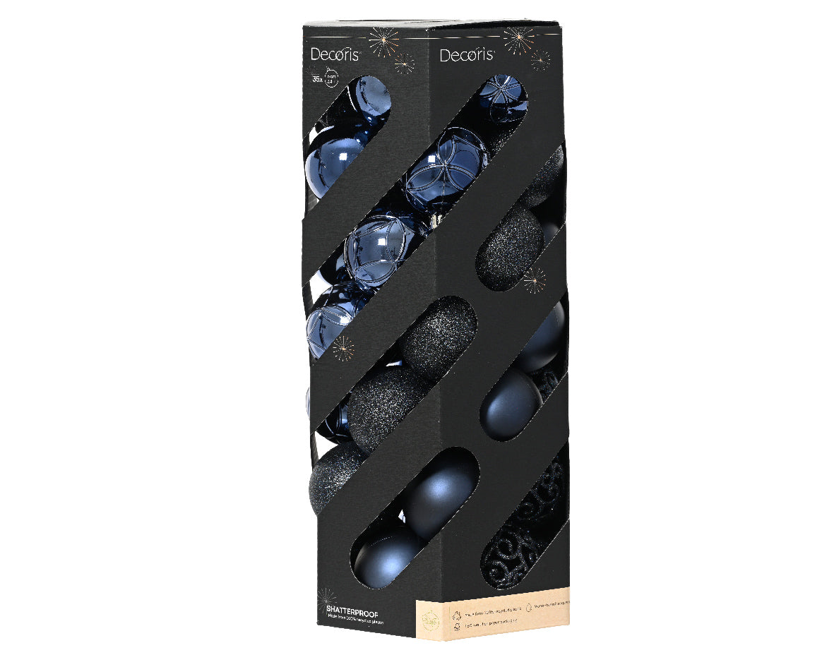 Decoris Recyclable Package Baubles Shatterproof Shiny Matt Mix 6cm Night Blue 35ct