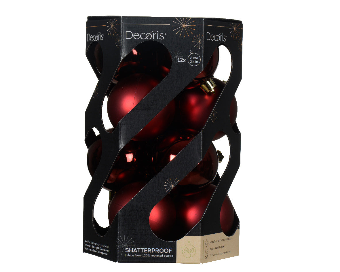 Decoris Recyclable Package Baubles Shatterproof Shiny Matt Mix 6cm Oxblood 12ct
