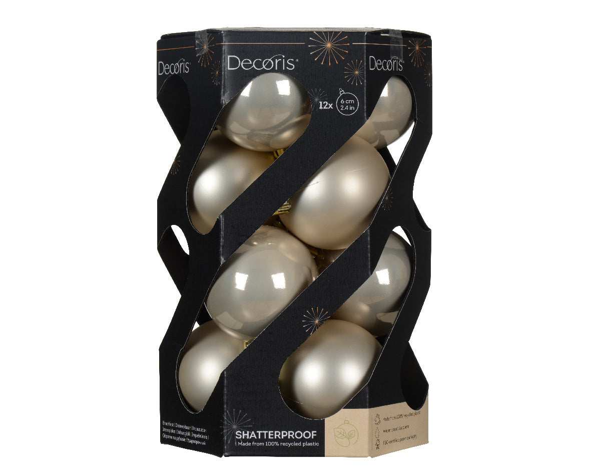 Decoris Recyclable Package Baubles Shatterproof Shiny Matt Mix 6cm Pearl 12ct