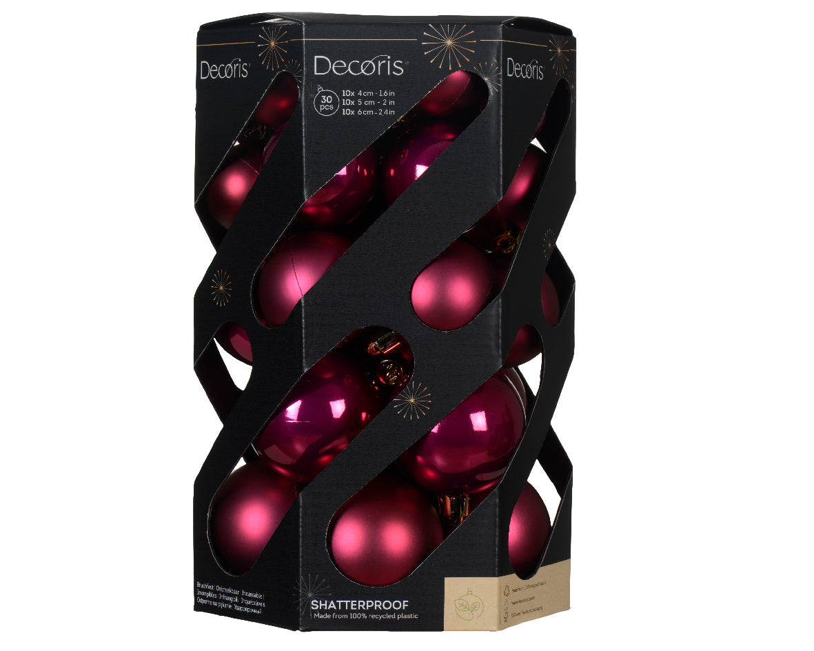 Decoris Recyclable Package Baubles Shatterproof Shiny Matt Mix 4cm/5cm/6cm Pomegranate 30ct