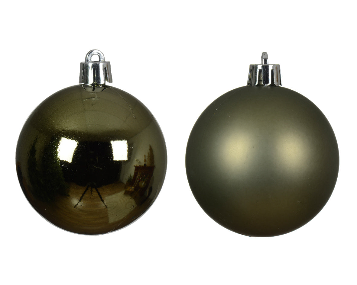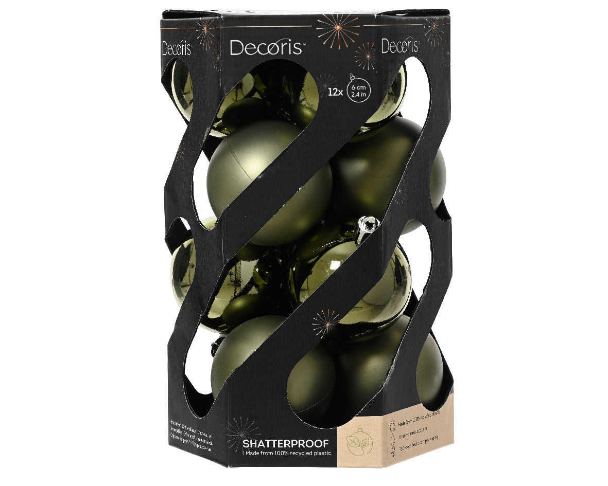 Decoris Recyclable Package Baubles Shatterproof Shiny Matt Mix 6cm Rosemary Green 12ct