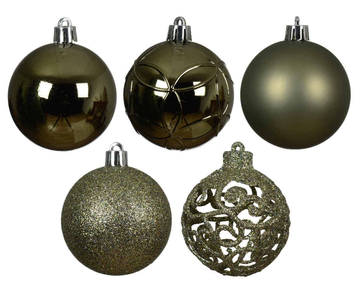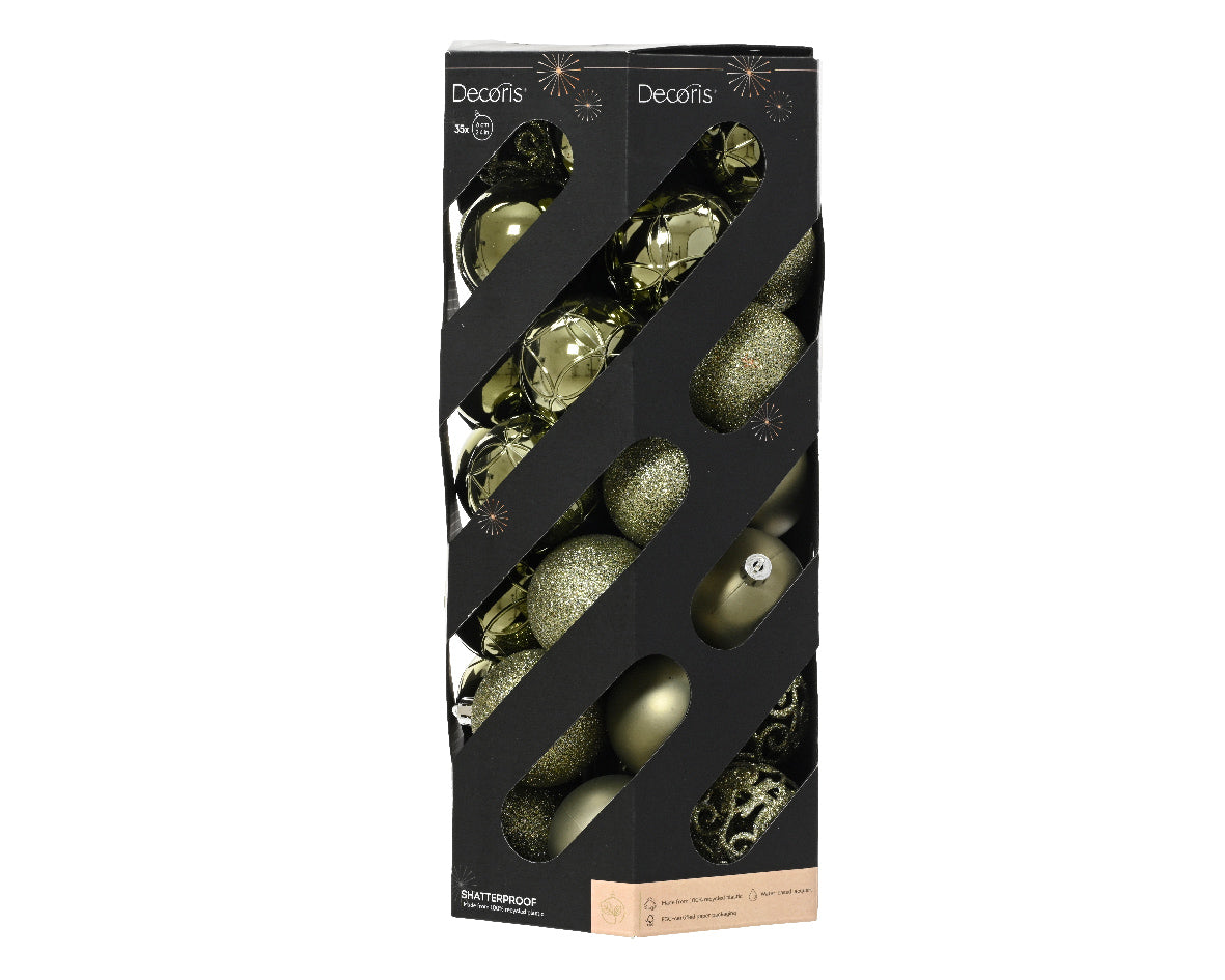Decoris Recyclable Package Baubles Shatterproof Shiny Matt Mix 6cm Rosemary Green 35ct