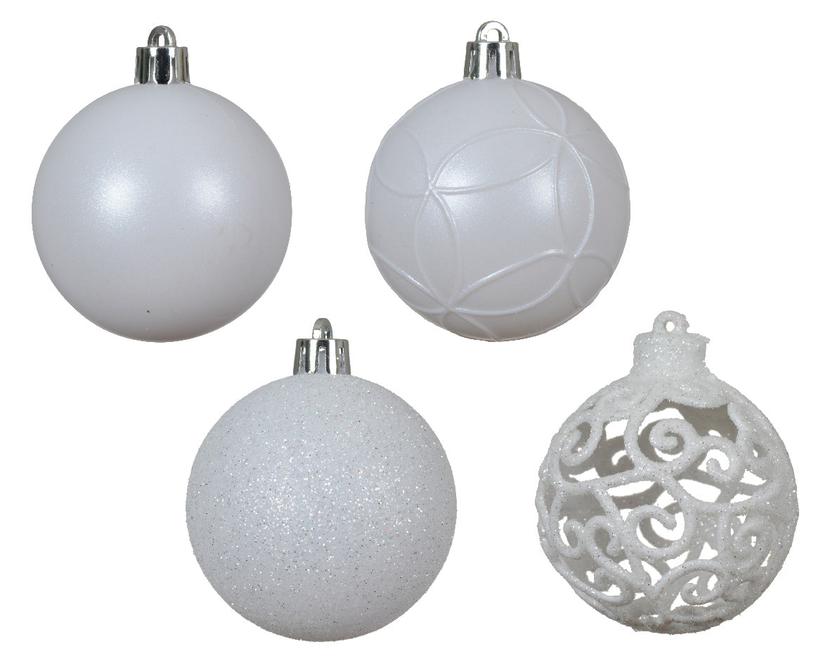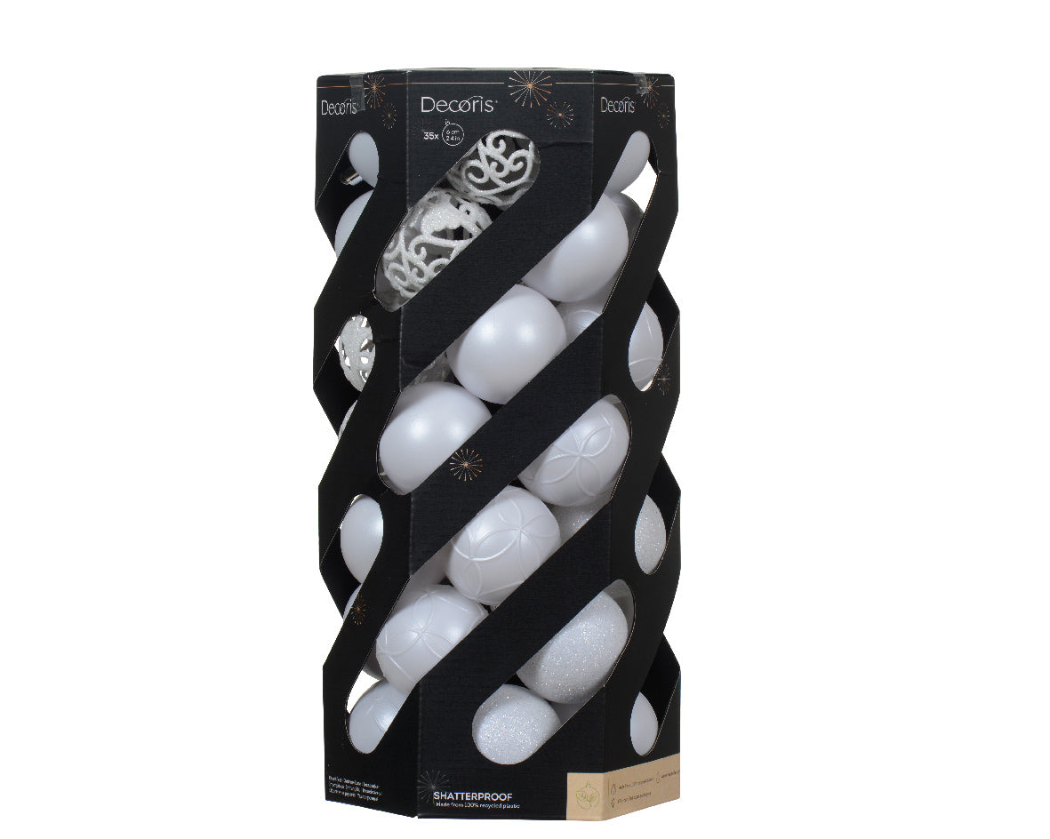 Decoris Recyclable Package Baubles Shatterproof Shiny Matt Mix 6cm Winter White 35ct
