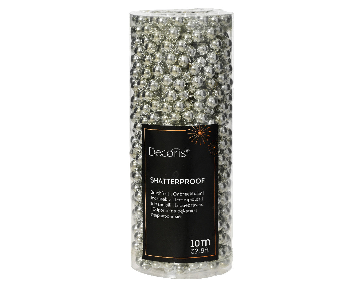 Decoris Shiny Bead Garland Silver in Tube 32.8ft