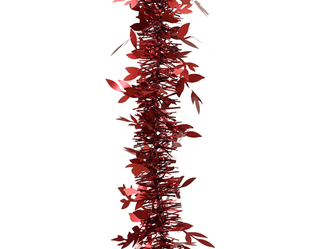 Decoris Tinsel Garland 6.6ft Leaves Oxblood