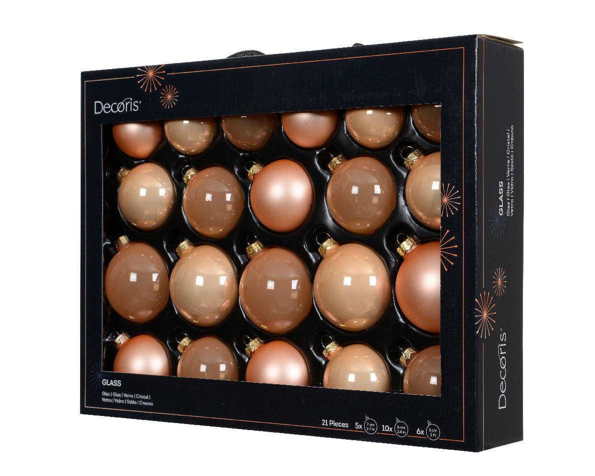 Decoris Glass Baubles 21pc Peach Pearl Transparent Mix