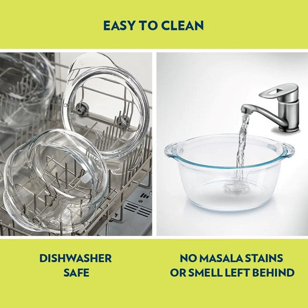 - Now no more worrying about something falling into your food or covering bowls with assorted plates the Borosil casserole is here to your rescue!