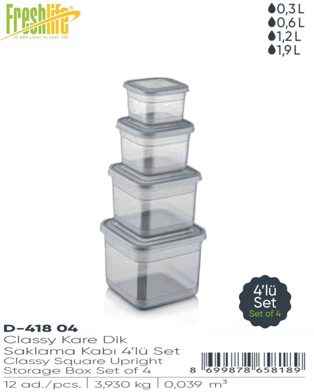Fresh Life Square Storage Container Set 4pc