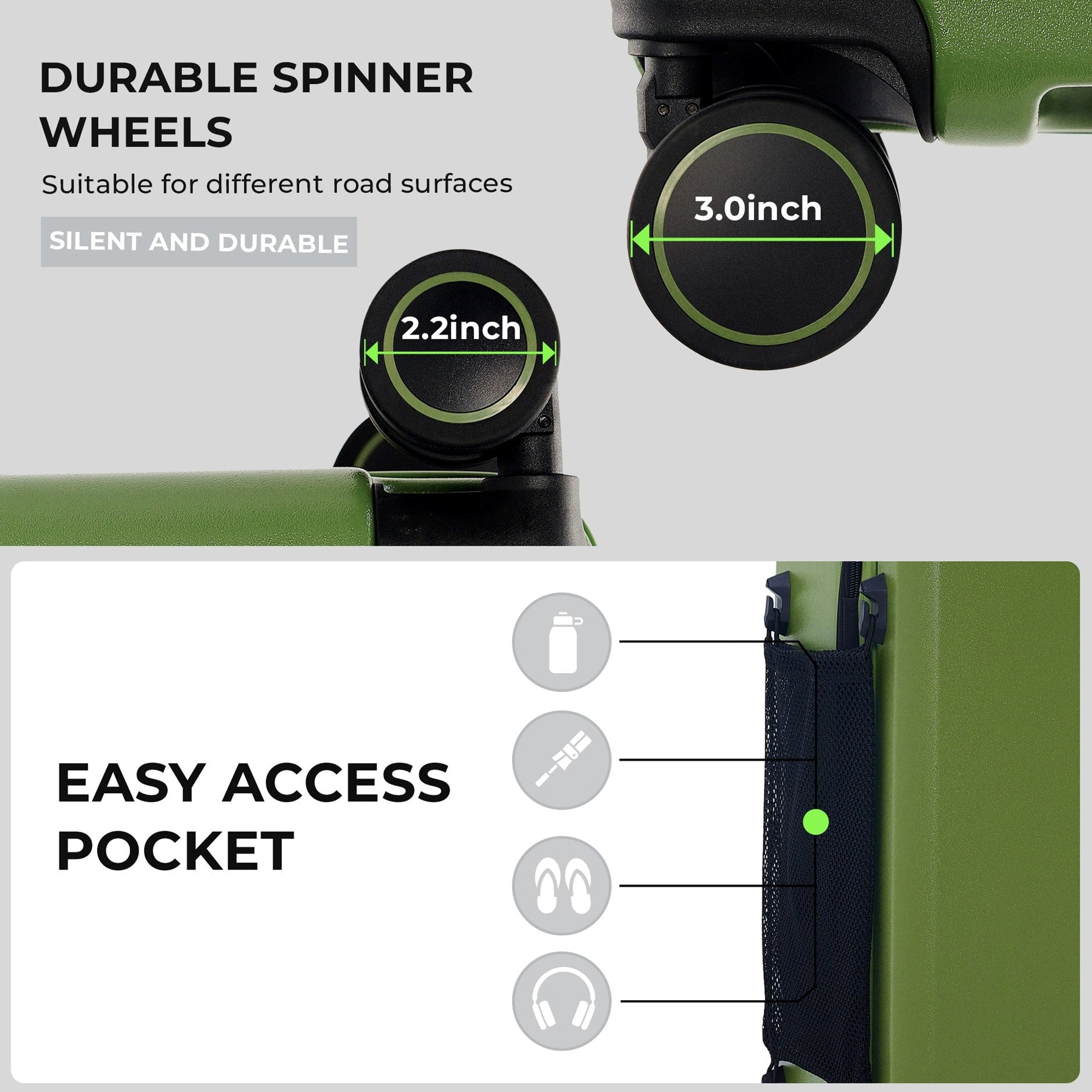 - Expandable Design: Expands by 2.3 inches, offering up to 25% more packing space.