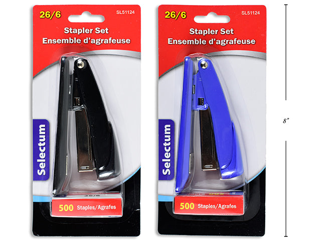 Full Size Metal Stapler with 500 Bonus Staples 2 Assorted Colours Blue and Black