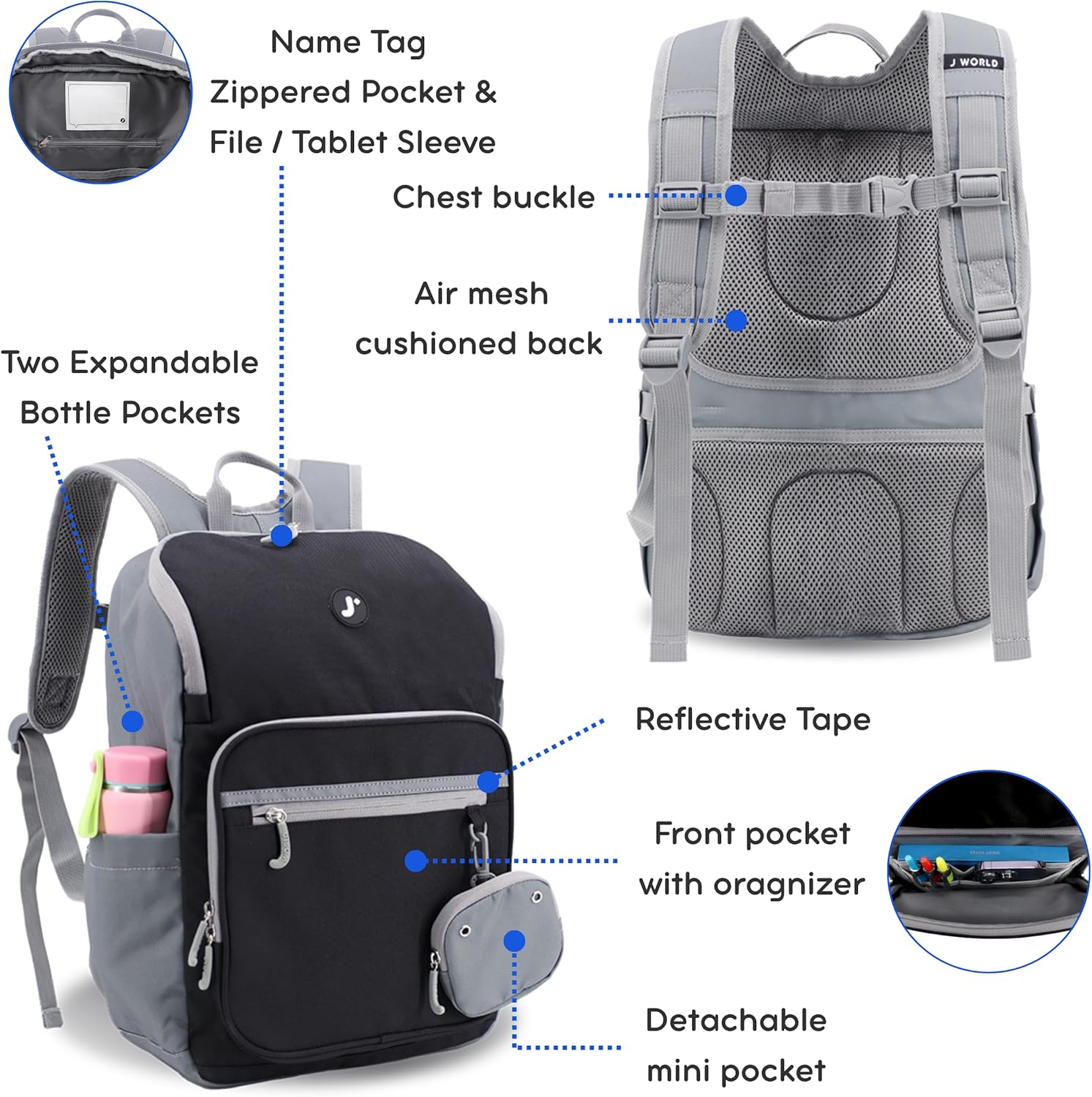 - Spacious Design – Main compartment with file divider, large front organizer pocket, 2 side pockets, and hidden back pocket. Backpack size: 15 x 10.6 x 5.1 in.