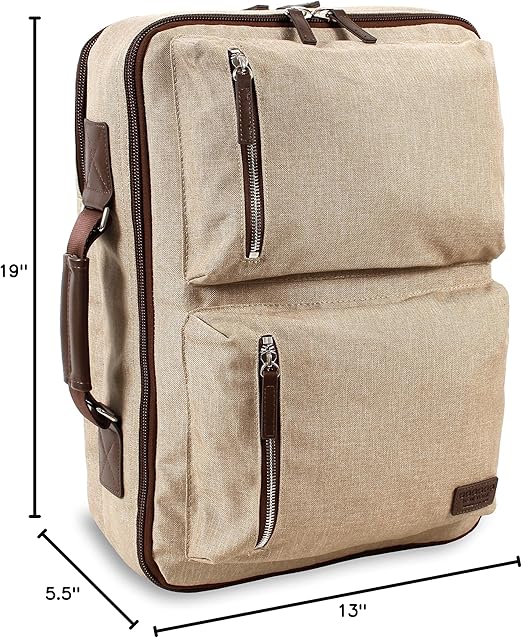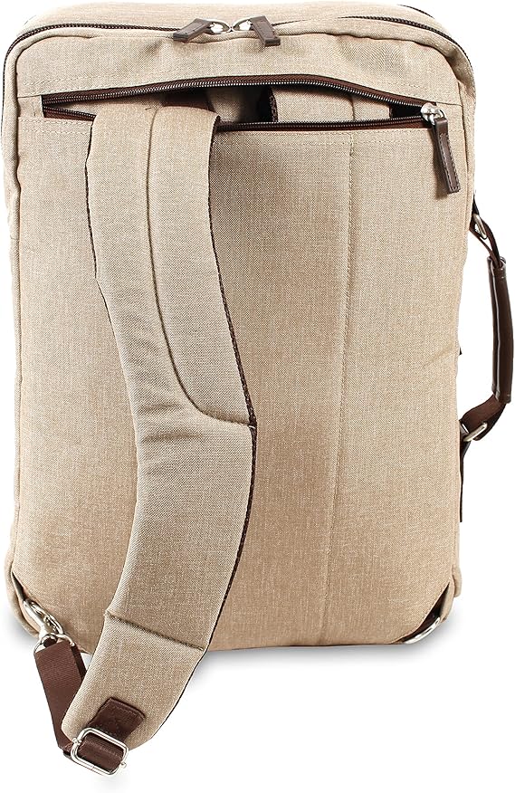- Convertible bag with padded laptop sleeve and two front utility pockets