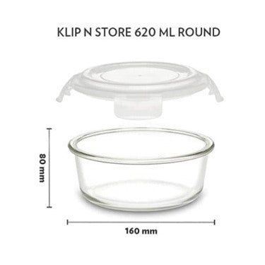 Borosil Microwavable Glass Klip-N-Store Round Container 620ml