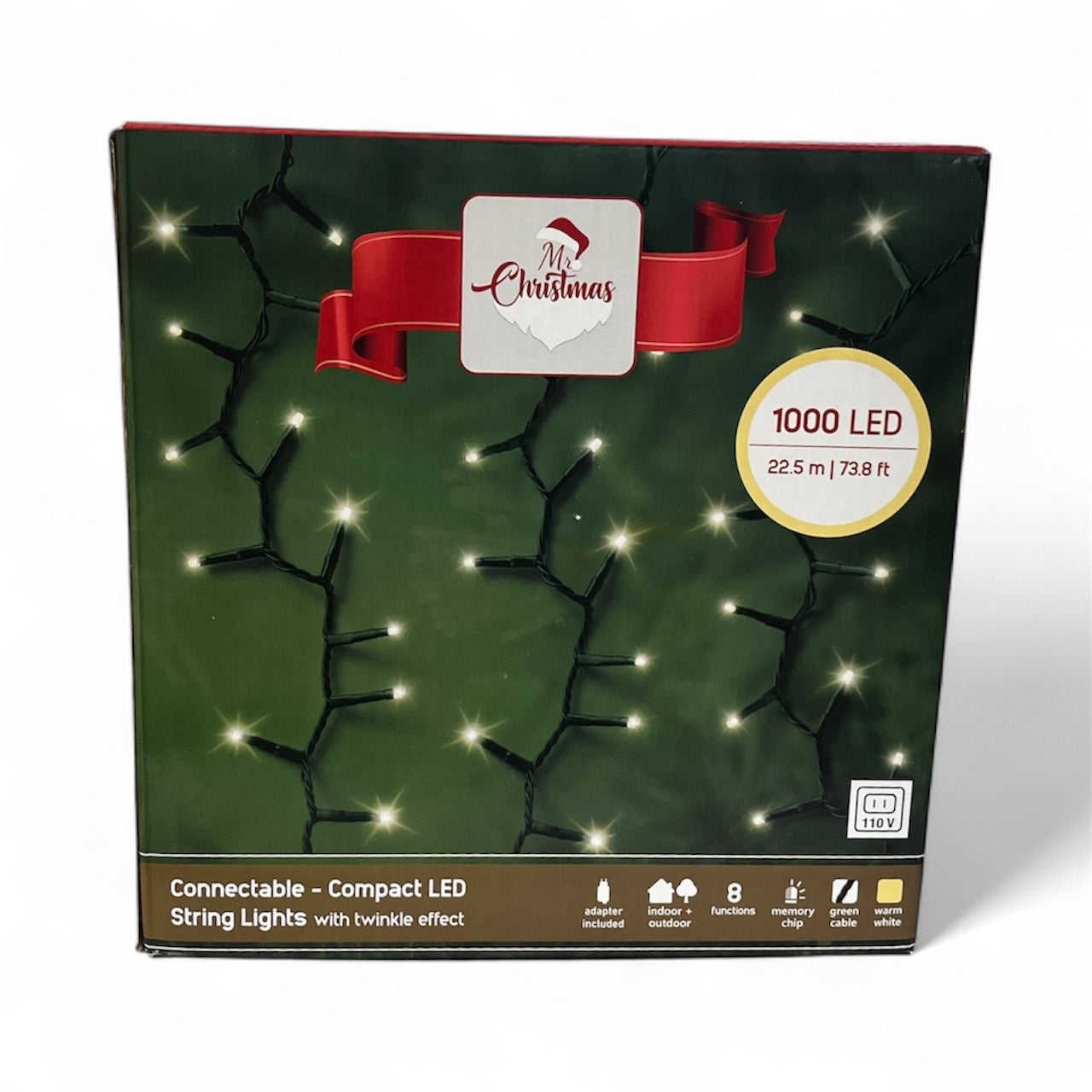 Mr. Christmas Connectable Compact 1000LED String Lights Warm White Green Wire
