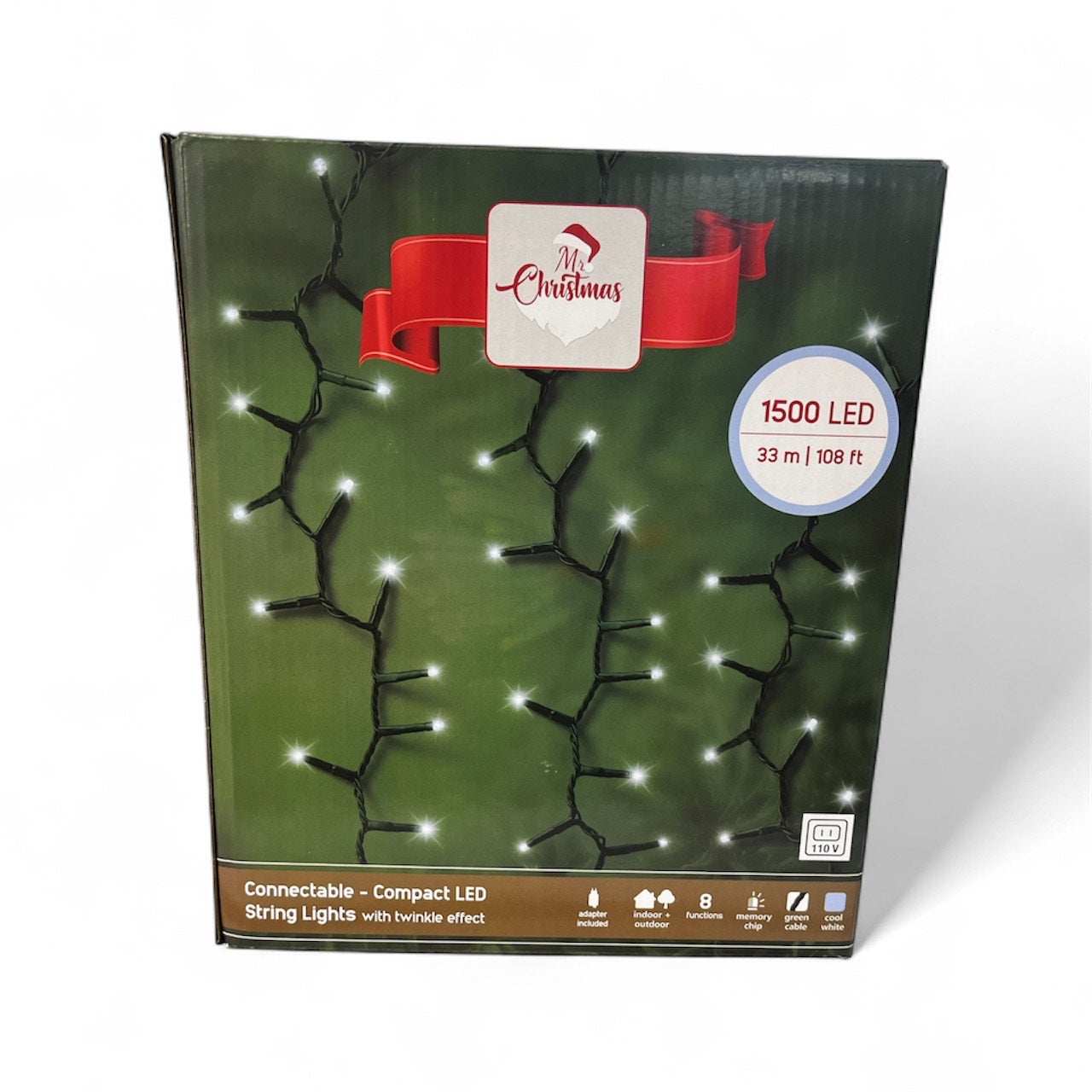 Mr. Christmas Connectable Compact 1500LED Cool White Green Wire