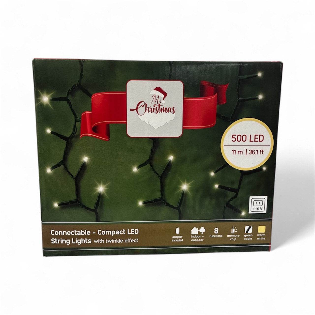 Mr. Christmas Connectable Compact 500LED String Lights Warm White Green Wire