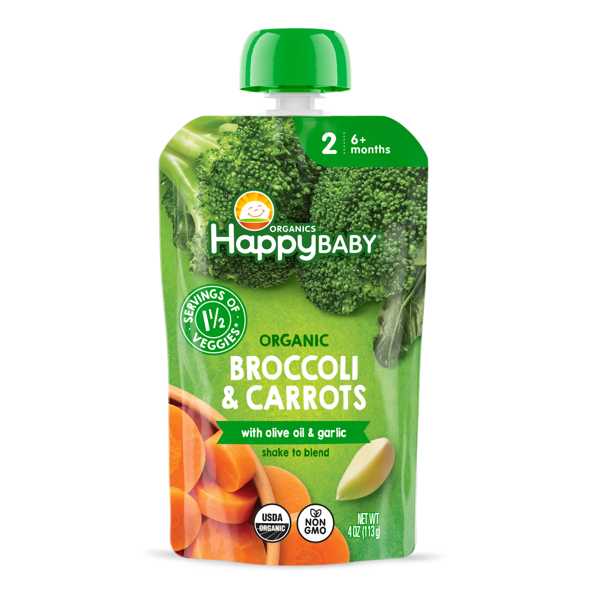 Organics Happy Baby stage 2 Savory Blends Broccoli & Carrots with Olive Oil & Garlic 4.0oz Pouch 6+ Months