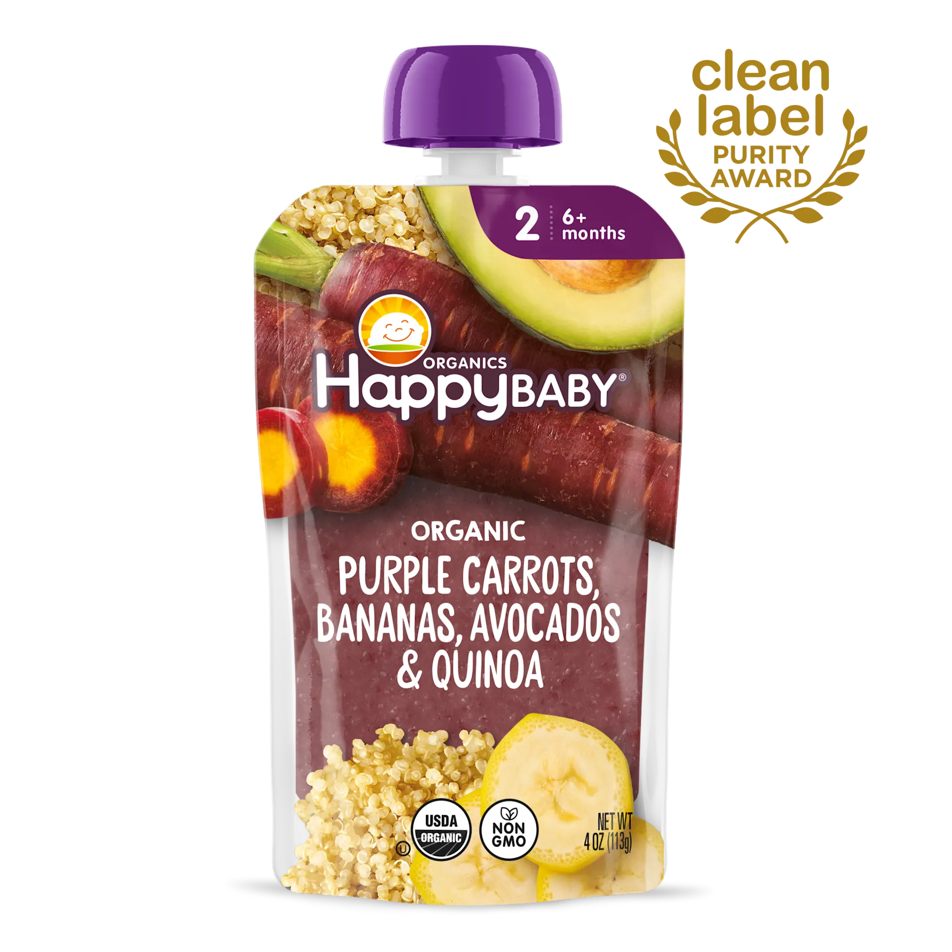 Organics Happy Baby Stage 2 Clearly Crafted Purple Carrots, Bananas, Avocados & Quinoa 4oz Pouch 6+ Months