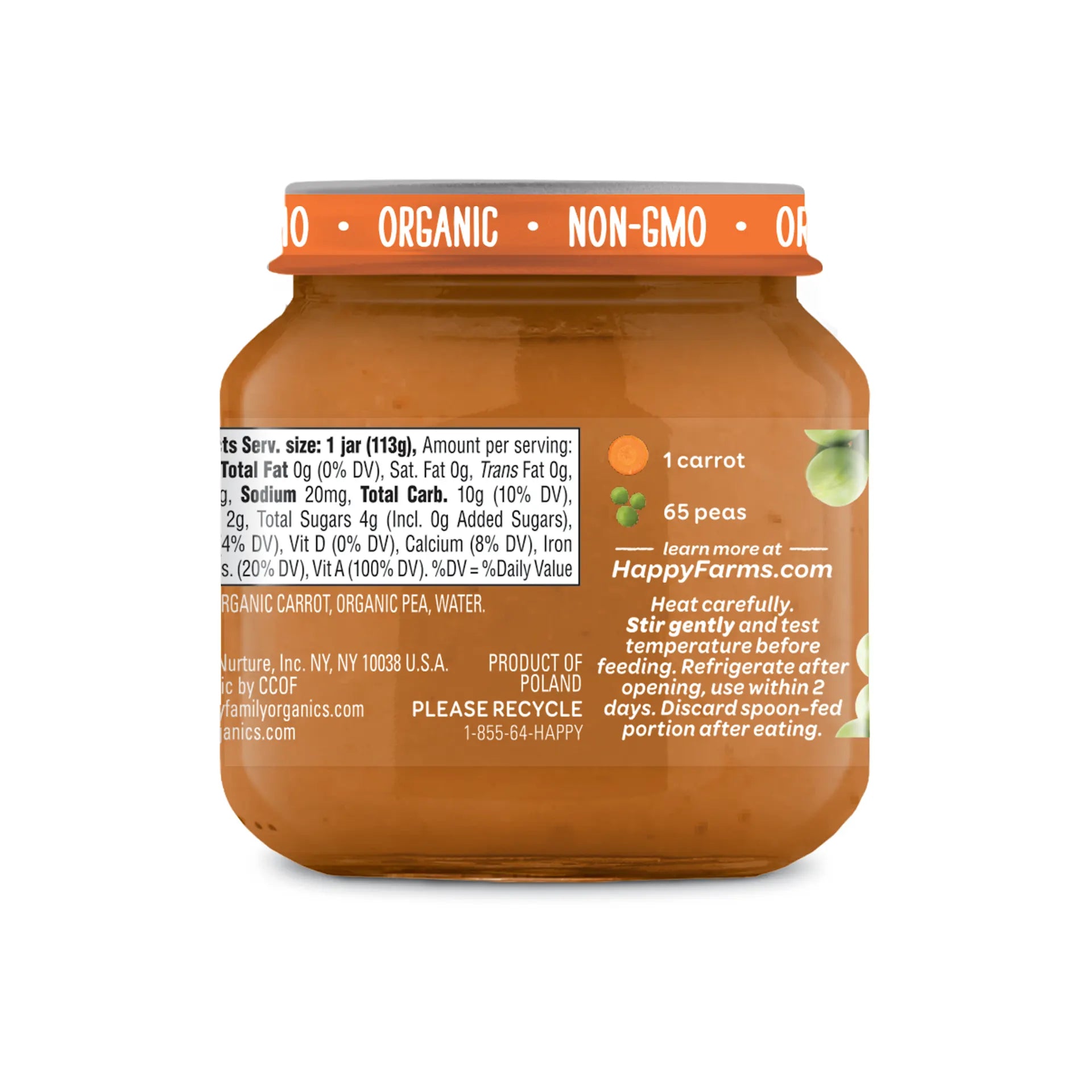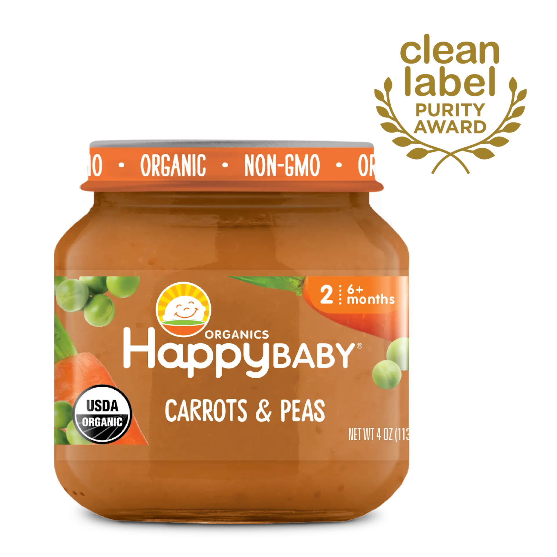 Organics Happy Baby Stage 2 Clearly Crafted Carrots and Peas 4oz Jar 6+ Months