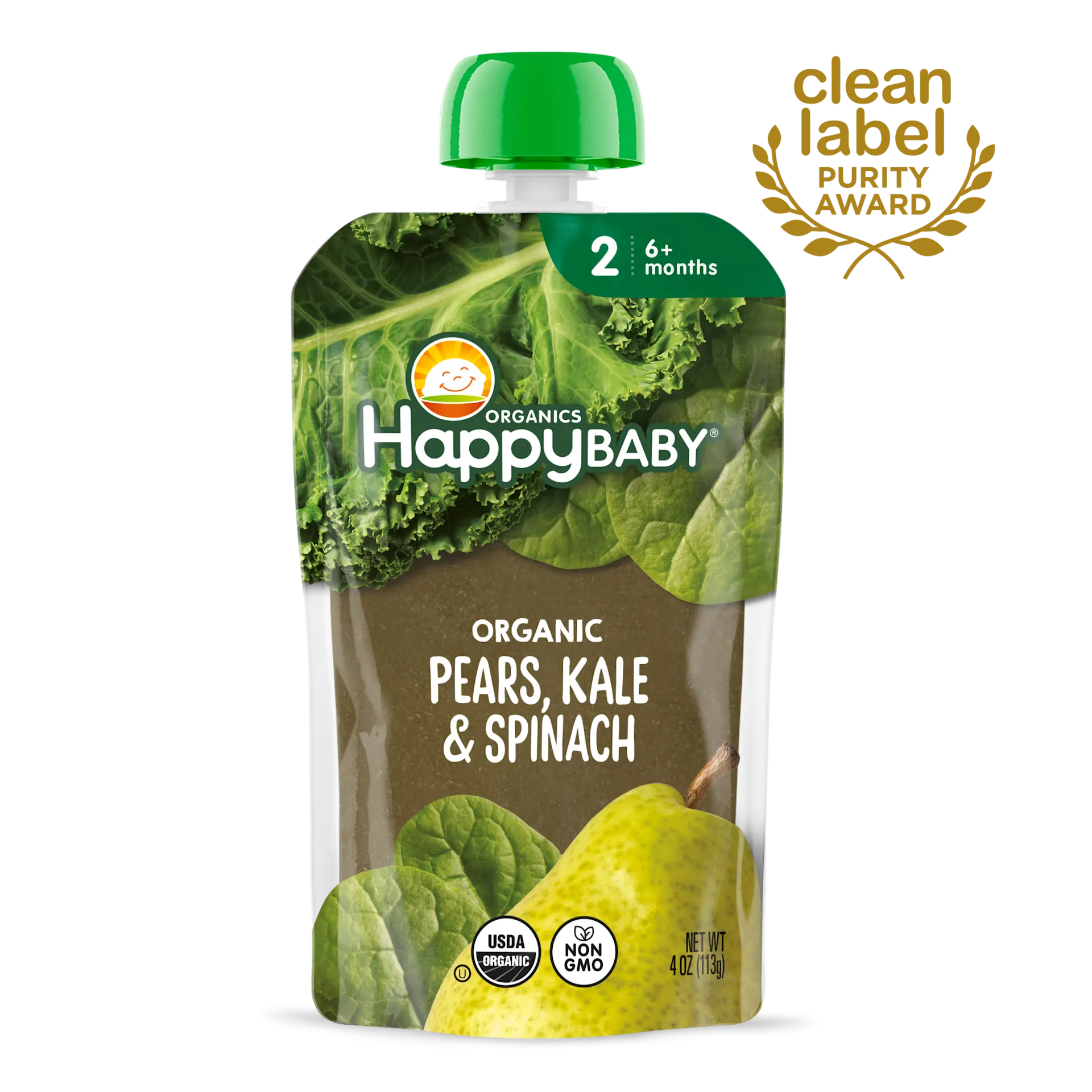 Organics Happy Baby Stage 2 Clearly Crafted Pears, Kale & Spinach 4oz Pouch 6= Months
