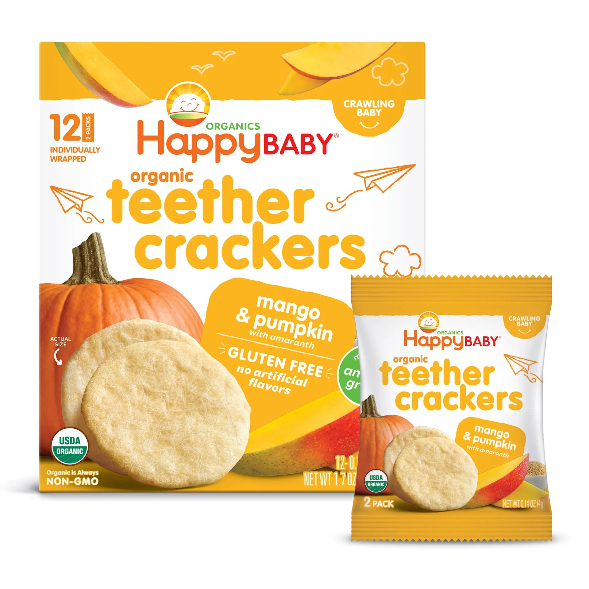 Organics Happy Baby Teethers Mango and Pumpkin 12pk for Sitting Babies