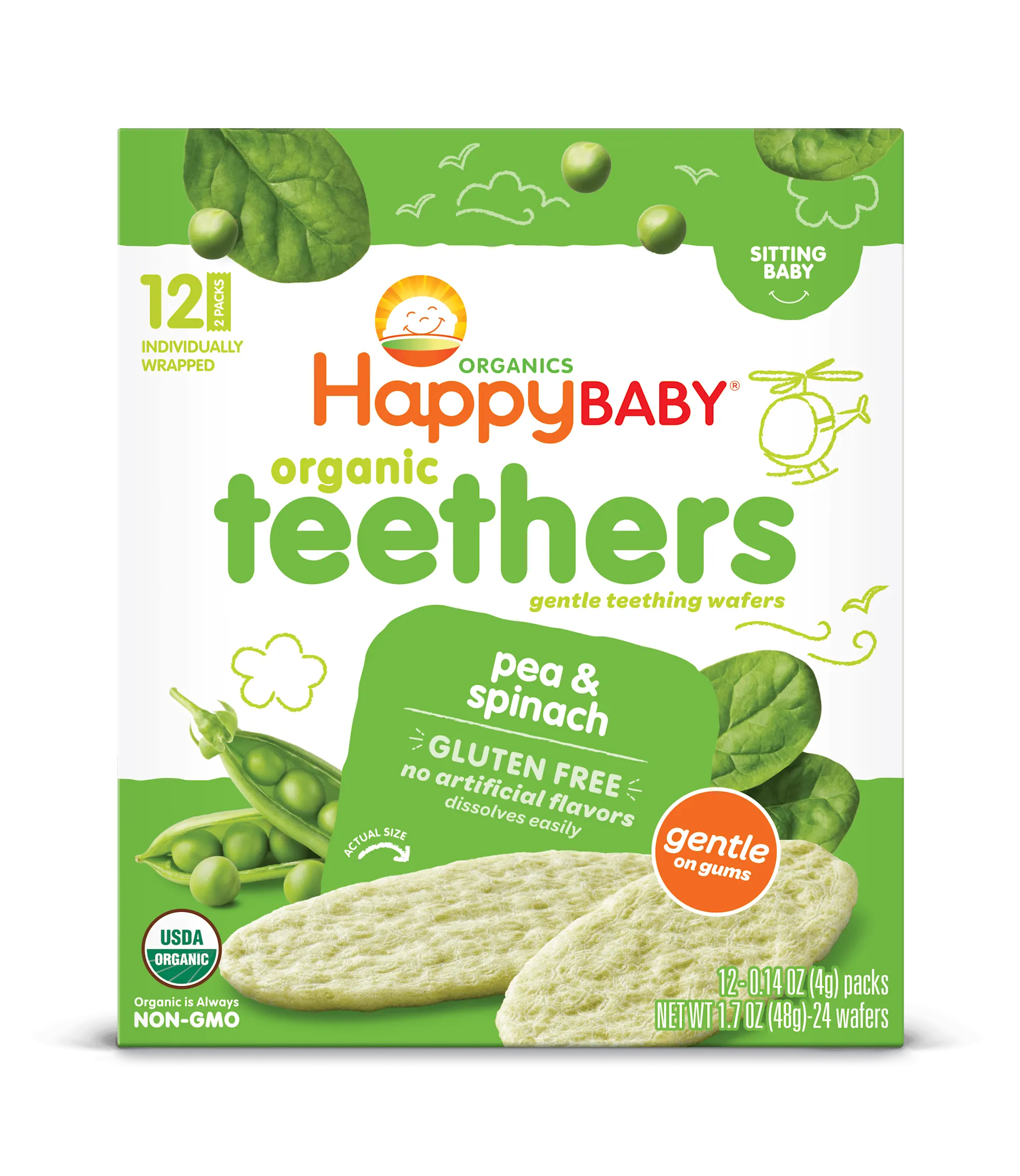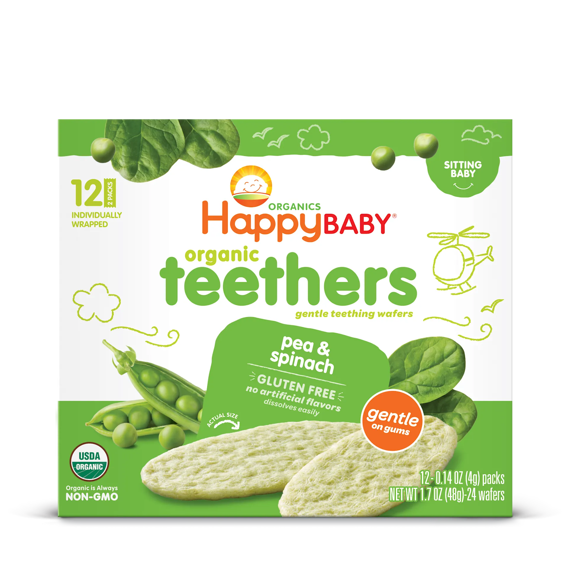 Organics Happy Baby Teethers Pea and Spinach 12pk for Sitting Babies