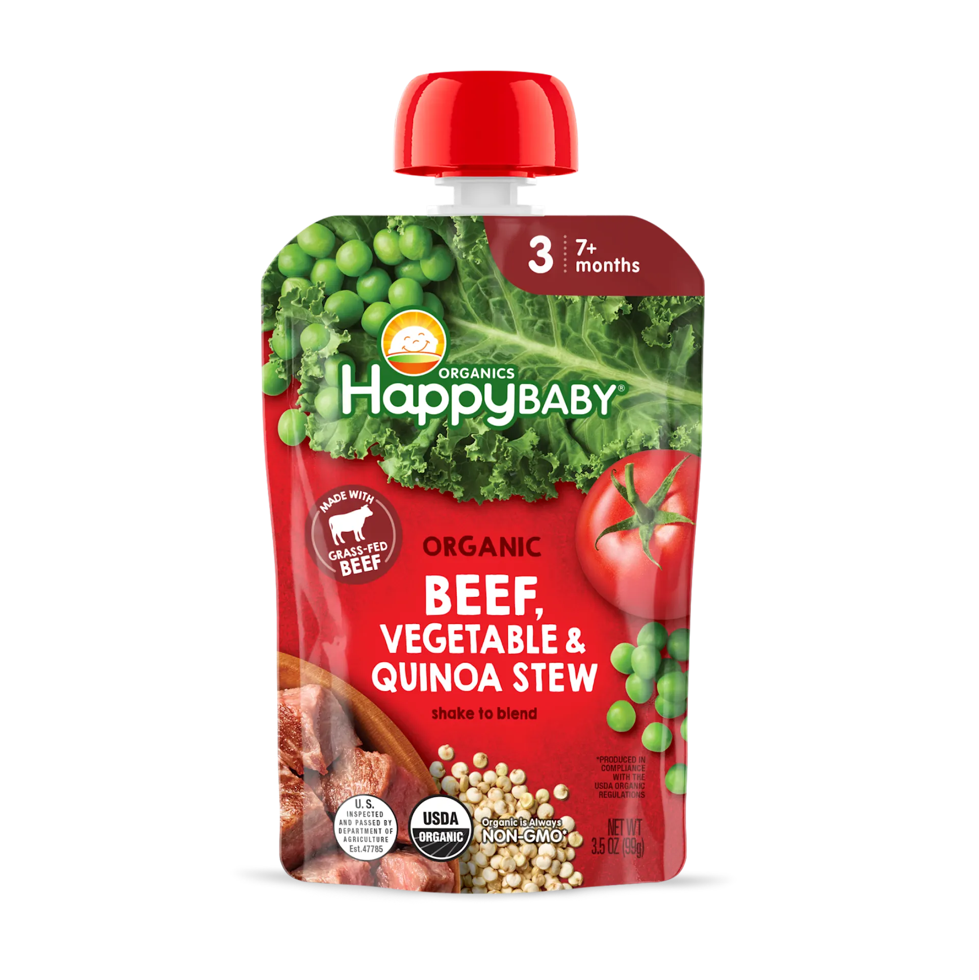 Organics Happy Baby Stage 3 Savory Blends Beef/Vegetables/Quinoa Stew 3.5oz Pouch 7+ Months