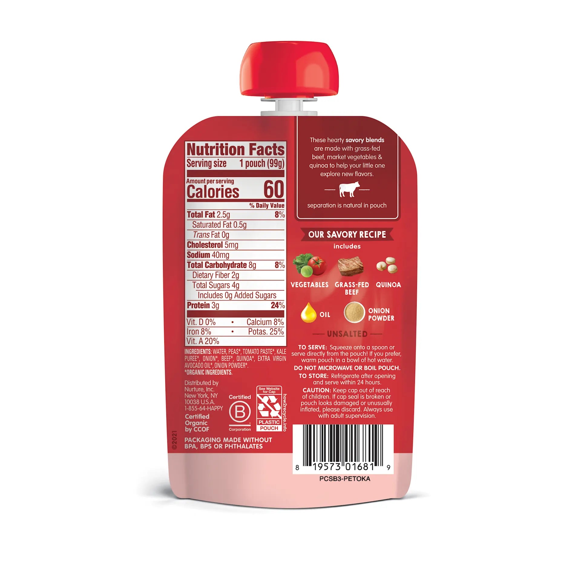 This stew-inspired puree introduces baby to exciting new flavors in a recipe that features organic grass-fed beef, market vegetables & quinoa, with flavorful oils & spices.