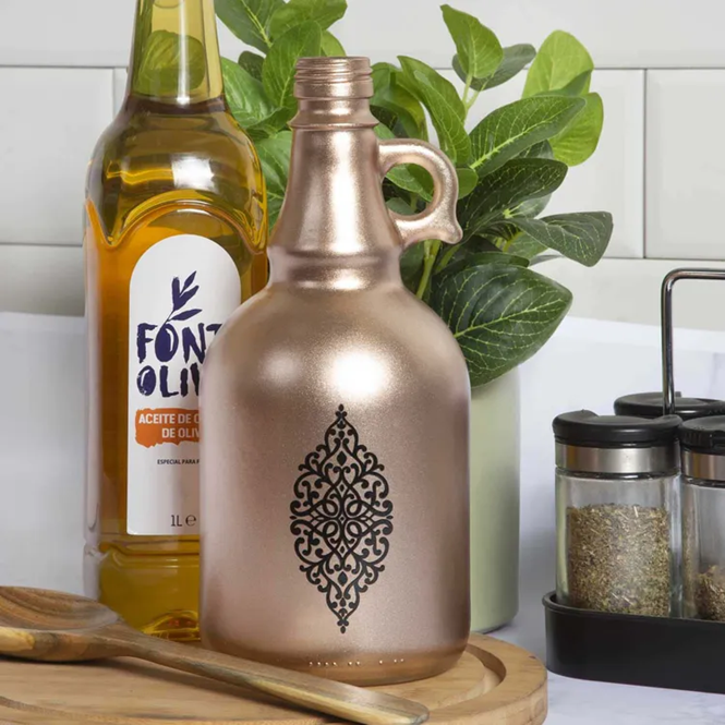 Oil/Vinegar Metallic Bottle Glass 1Lt Assorted
