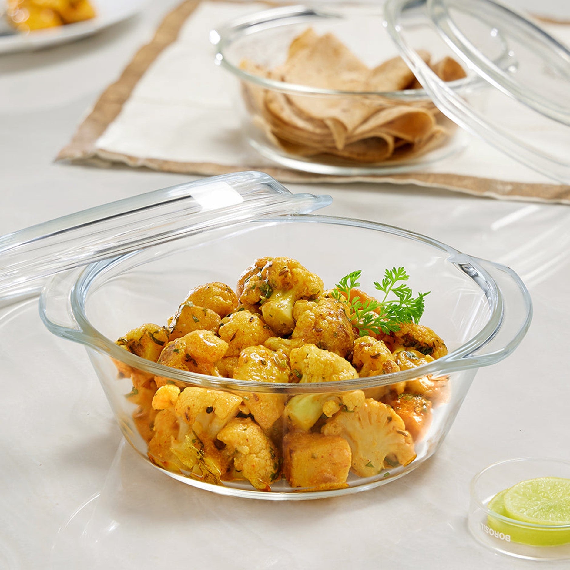 Borosil Round Glass Casserole Dish and Glass Lid 1L Oven and Microwave Safe