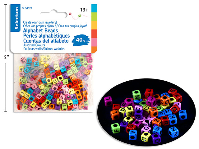 Sel Alphabet Letter Sq Beads Asst Clrs