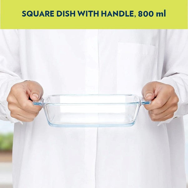 Borosil Microwavable Square Glass Baking Dish With Handle 800ml