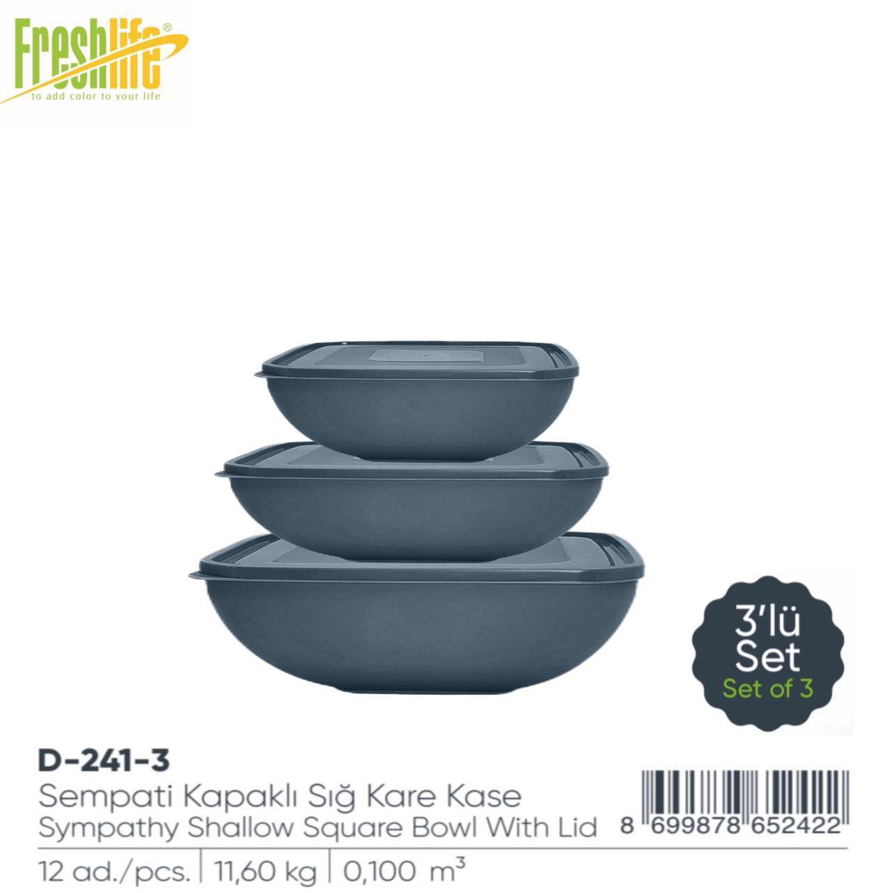 Sympathy Shallow Square Bowl with Lid 3pc Set