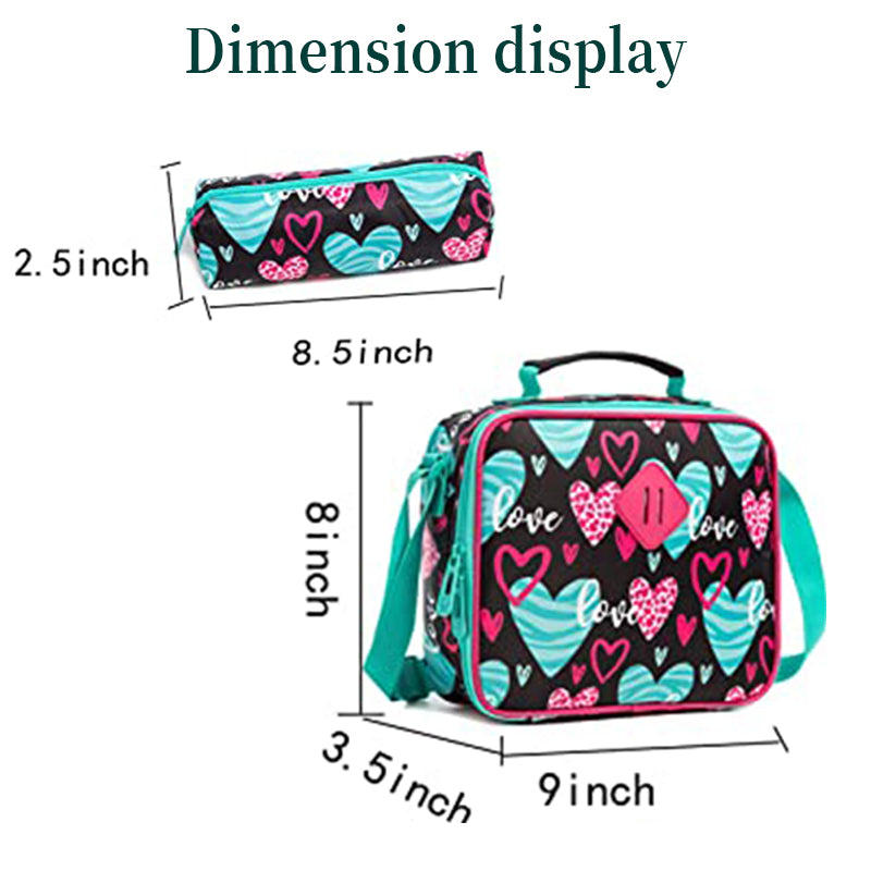 A lightweight and stylish 18-inch rolling backpack set with a matching insulated lunch bag and pencil case, offering ample storage and organization for school essentials.